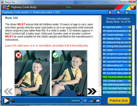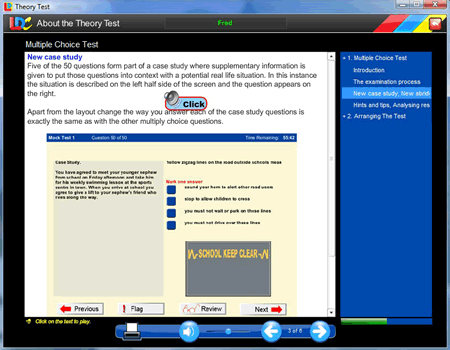 • Interactive tutorial that tells you all about the Theory Test with professional voice over.