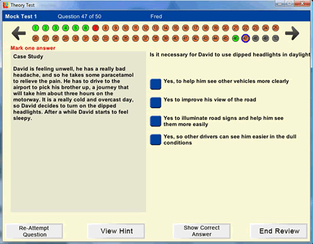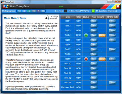 • Theory Test14 properly balanced pre-set simulated Theory Tests based on our extensive experience (as one of the largest national driving schools in the UK) of the most commonly occurring test questions all under realistic exam conditions.